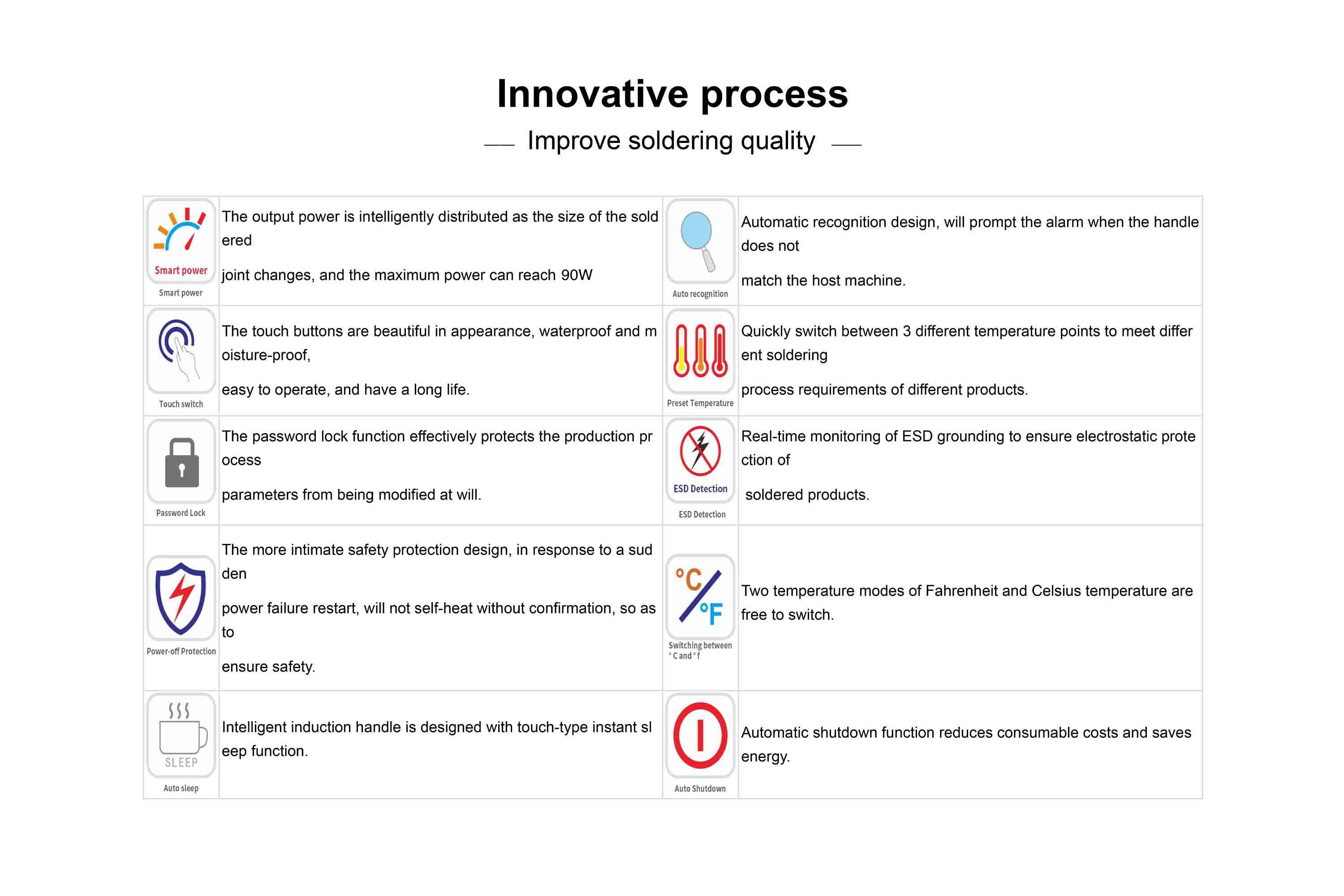 - Compatible with various types of soldering iron tips.